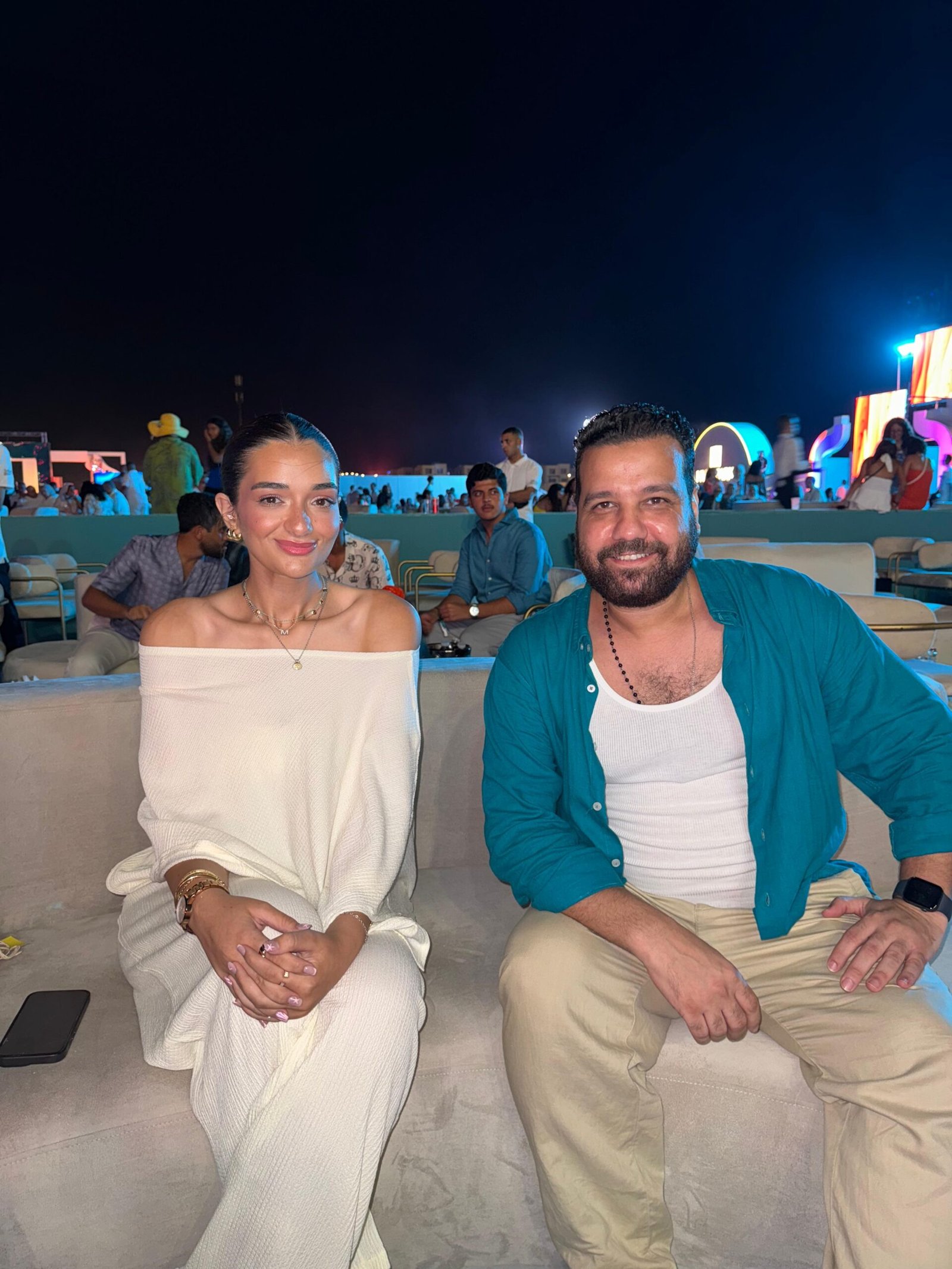 وشهد الحفل الغنائي المُقام برأس الحكمة للنجم الإماراتي حسين الجسمي والنجم المصري أحمد سعد في الساحل الشمالي حضورًا لافتًا لعدد من النجوم الشباب، من بينهم الفنانة ملك أحمد زاهر وأصدقائها ،وشقيقتها ليلى أحمد زاهر ووالدها ووالدتها، حيث ظهرتا بكامل أناقتهما وسط أجواء من البهجة والحماس.