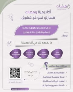 تعلن أكاديمية ومضات عن إطلاق فرص تعليمية وتطويرية مجانية مخصصة للنساء والأطفال، تشمل: