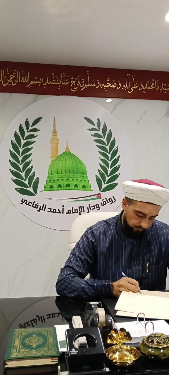 ( الإردن ) شيخ الطريقة الرفاعية القادرية العلية ومؤسس مجلس للصلاة على النبي و مؤسس مهرجان ( بالحبيب محمد نقتدي ) الموسمي . مؤسس مبادرات للحفاظ ( القرأن الكريم ) و ( الأربعين النووية ) . حصل على لقب امام الدعاة في بلاد الشام سنة ( 2014 ) ونال جائزة بها وحصل على جائزة من اللجنة الأخلاقية سنة ( 2013 )