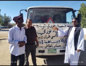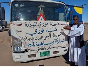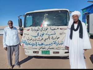 . “صباح اليوم، ومن أمام محلية مروي، انطلقت قافلة الدعم والإسناد لنازحي الفاشر بمركز إيواء أزهري المبارك بمنطقة العفاض. وكان في وداع القافلة السيد حسن حسين، نائب المدير التنفيذي لمحلية مروي، والمرافقين من نوري الرئيس التنفيذي عبد الله شرومي، ونور الدين، وأبوبكر الصديق،