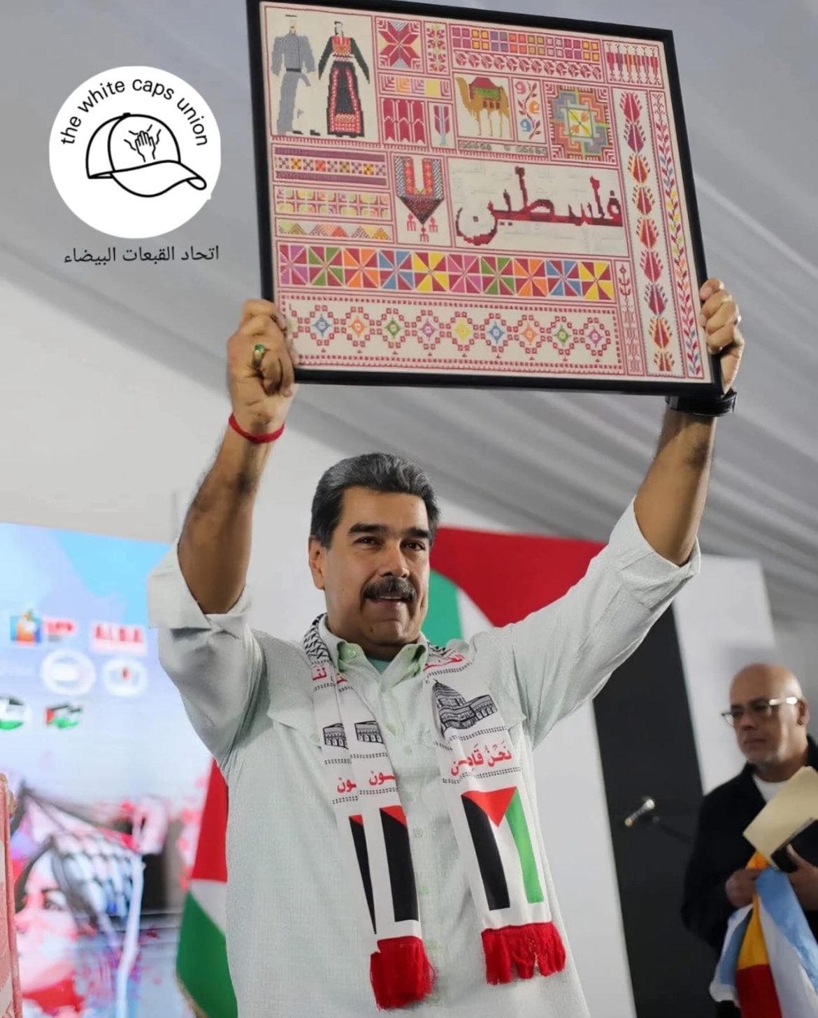 ويندد بقرار أمريكا ويستنكر اختطافها واعتقالها للسيد الرئيس مادورو ، رئيس دولة فنزويلا العظيمة وزوجته على خلفية تضامنه وبلاده المطلقين مع القضية الإنسانية الأولى في هذا العالم (القضية الفلسطينية) وعدالتها.