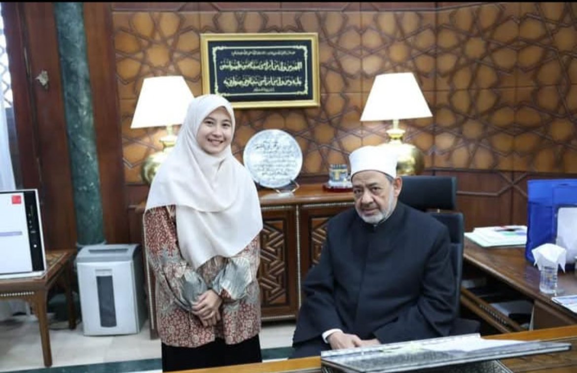 كما أعربت الطالبة الإندونيسية «ييلي» عن سعادتها الغامرة بلقاء فضيلة الإمام الأكبر، مؤكدة أن مقابلته كانت من أمنياتها منذ التحاقها بالأزهر، وأنها لم تعد إلى بلدها منذ أربع سنوات طلبًا للعلم، مشيرة إلى أن حب القرآن الكريم راسخ في وجدانها منذ الصغر، وقد كان الدافع لاختيارها دراسة البلاغة والتخصص في علوم القرآن.