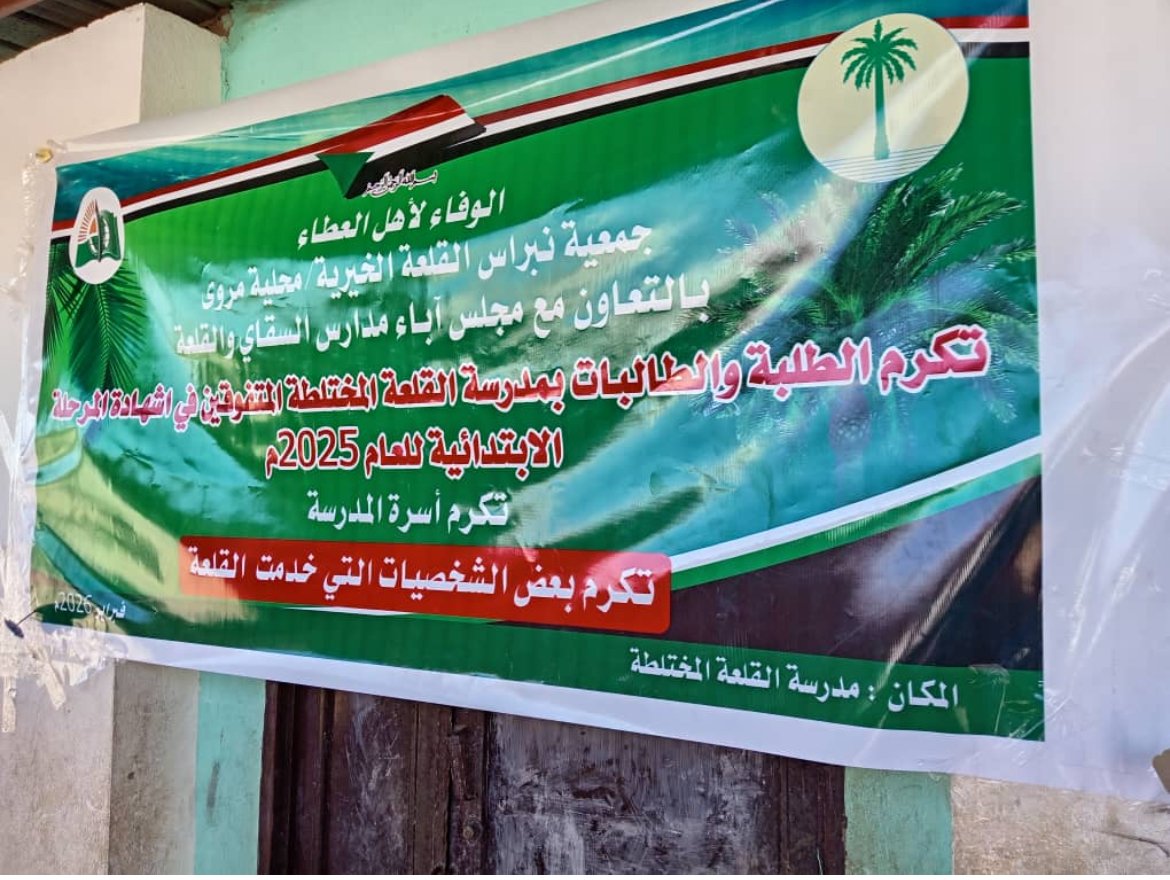 جمعية نبراس الخيريه للمراه تقوم بتكريم متفوقي مدارس القلعه المرحله الابتدائيه وتكرم عدد من الشخصيات الفاعله في المجتمع بالتعااون مع مجلس الاباء مدارس القلعه والسقاي بتشريف قيادات العمل التنفيذي والتعليمي بمحلية مروي بالشمالية.. وواسر المتفوقين وعدد من المبدعين والمشاركات الطلابية