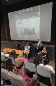، وفي وسط يوم مليان تفاصيل، كنت واخدة معايا عيسى أبو عرب — صاحب منصه “ترند العرب” — علشان نحضر فعالية ضمن فاعليات المدرسة العربية للسينما والتلفزيون تحت رعاية الأستاذة الدكتورة نبيلــة حســن، رئيس أكاديمية الفنون، وبرئاسة الأستاذة الدكتورة منى الصبان، مديرة المدرسة العربية للسينما. من أول لحظة دخلنا فيها، كان واضح إن المكان مش مجرد مؤسسة تعليمية، لكنه حالة خاصة جدًا… حالة فيها شغف حقيقي بالفن.